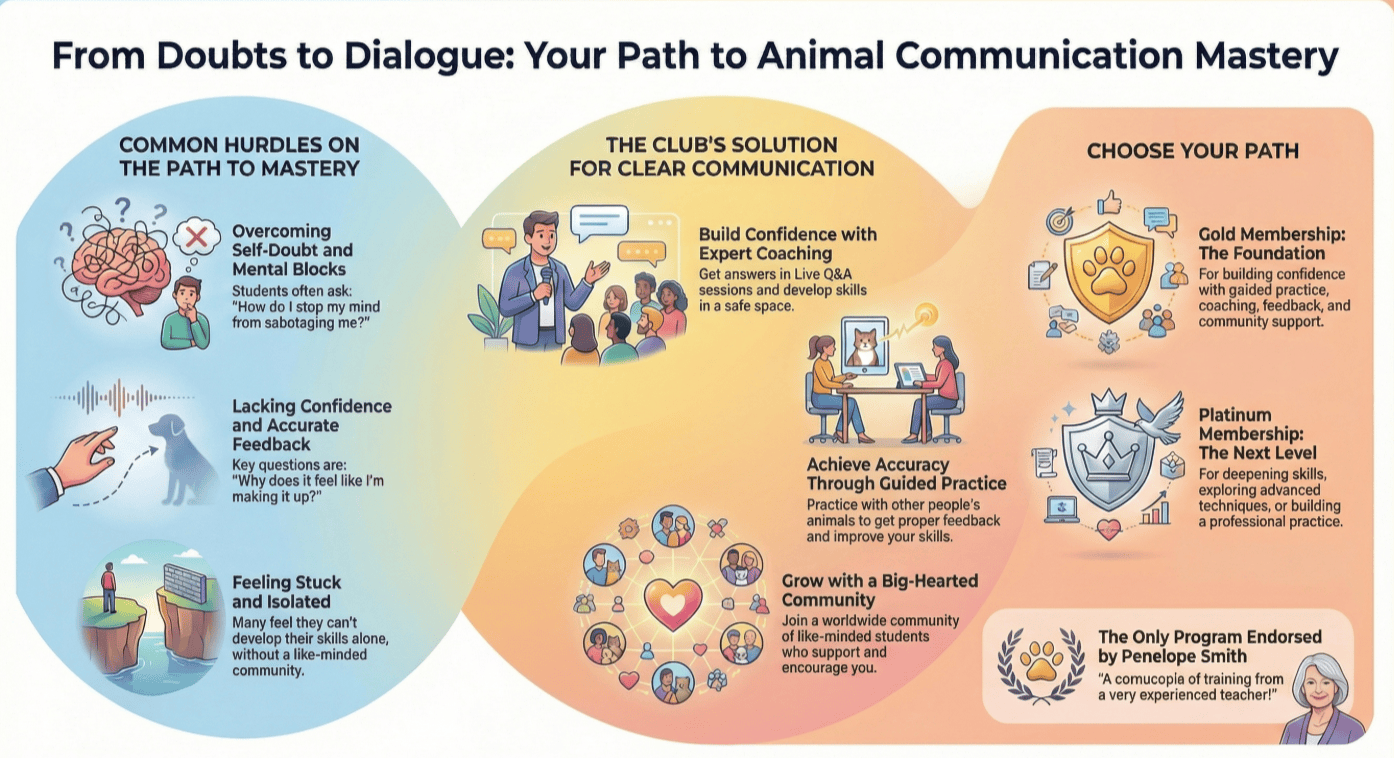 "Val is battle-tested and knows her stuff. With 30 years of working as a successful, professional animal communicator, she has an incredible range of expertise. I've heard her asked ALL kinds of questions and she never falters or fails to help in the most amazing ways. Join the Animal Talk Coaching & Mastery Club® if you really want to develop your intuitive skills and master animal communication, but only if you want to have fun and grow!" – Andy S.