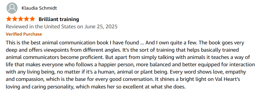 Tricia said, "I stumbled on your site through a list of animal communicators. Some held occasional live classes, others had recorded classes but no one else offered a live school. After taking two short term classes, I knew I needed an ongoing community to hone my skills. Your School provides that and so much more. I continue to be amazed at the depth and breadth of the information provided."